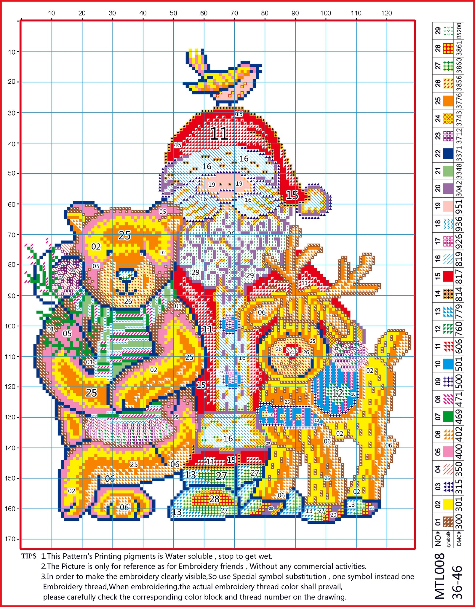 The color block in the picture does not represent the color of the embroidery thread. Please carefully identify the symbol or serial number corresponding to the color block, and select the number of lines according to the requirements of the serial number.