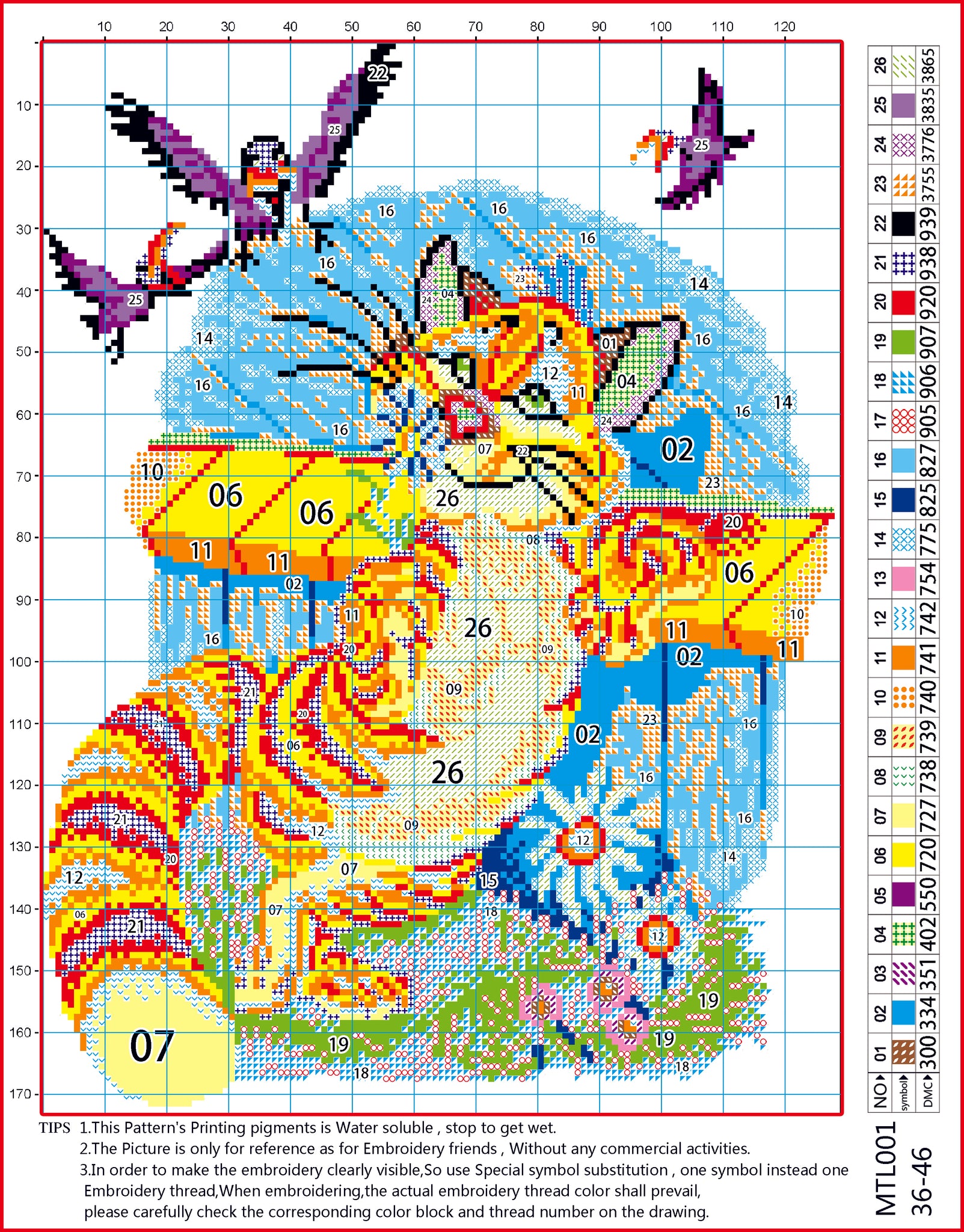 The color block in the picture does not represent the color of the embroidery thread. Please carefully identify the symbol or serial number corresponding to the color block, and select the number of lines according to the requirements of the serial number.