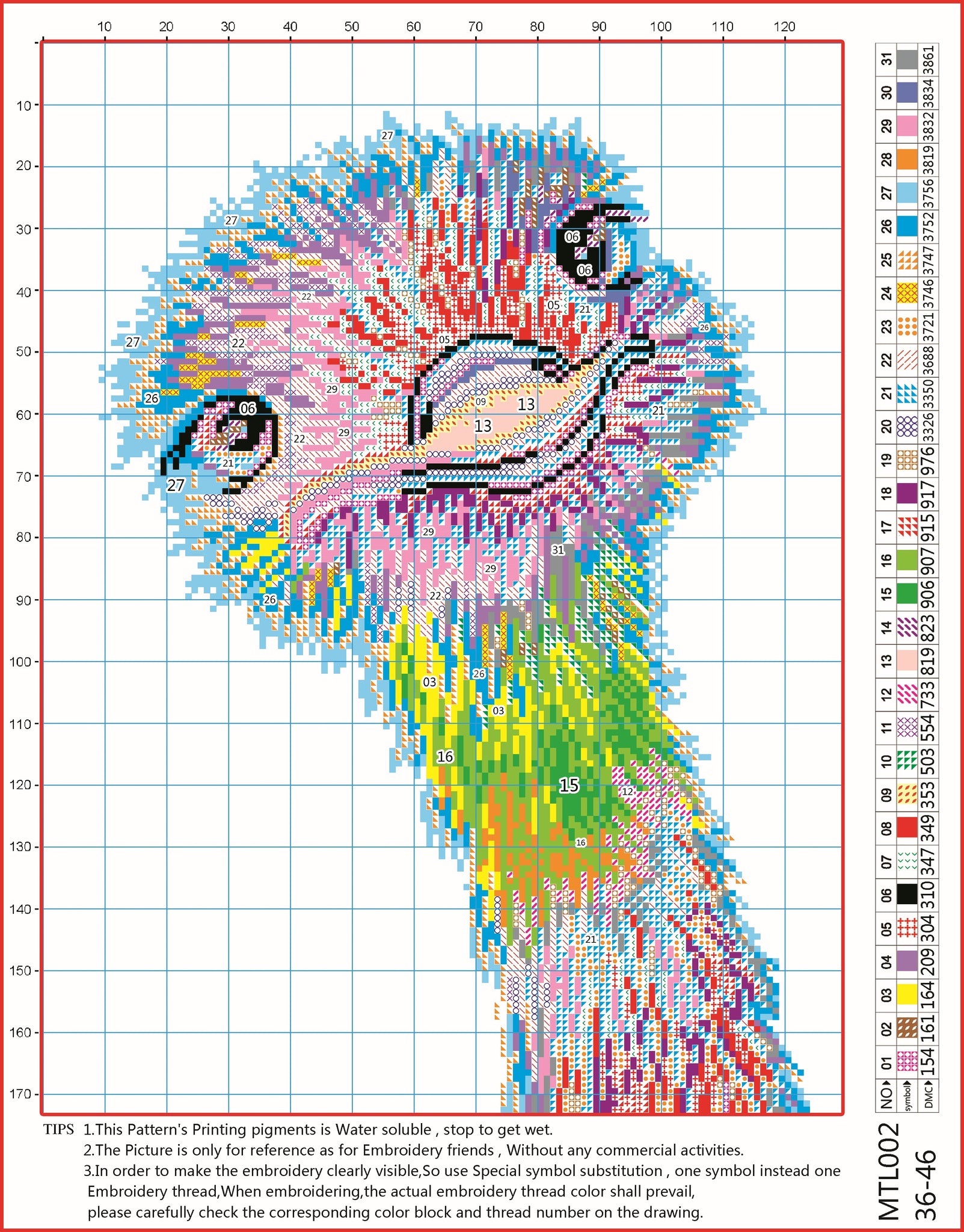 The color block in the picture does not represent the color of the embroidery thread. Please carefully identify the symbol or serial number corresponding to the color block, and select the number of lines according to the requirements of the serial number.