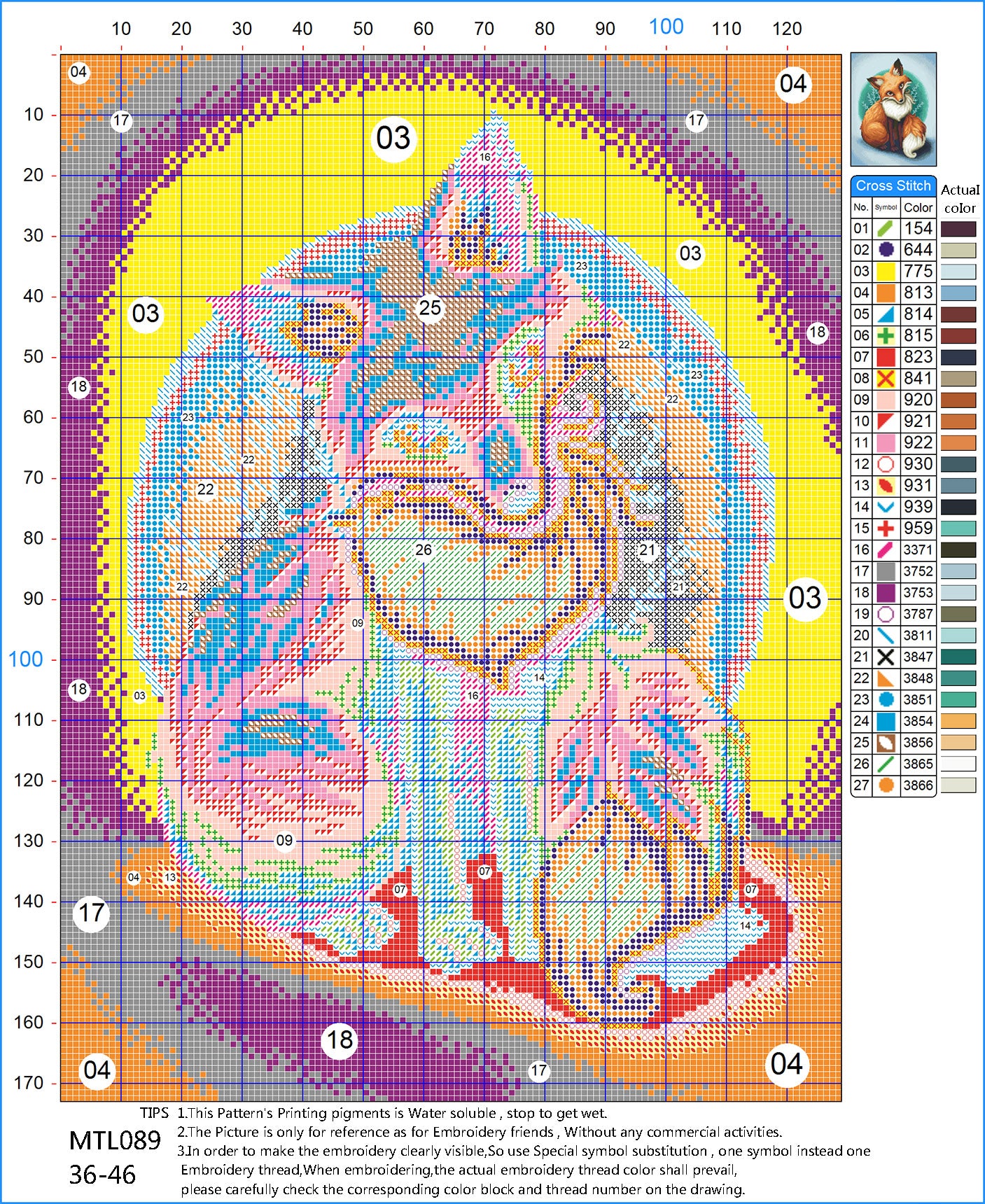 The color block in the picture does not represent the color of the embroidery thread. Please carefully identify the symbol or serial number corresponding to the color block, and select the number of lines according to the requirements of the serial number.