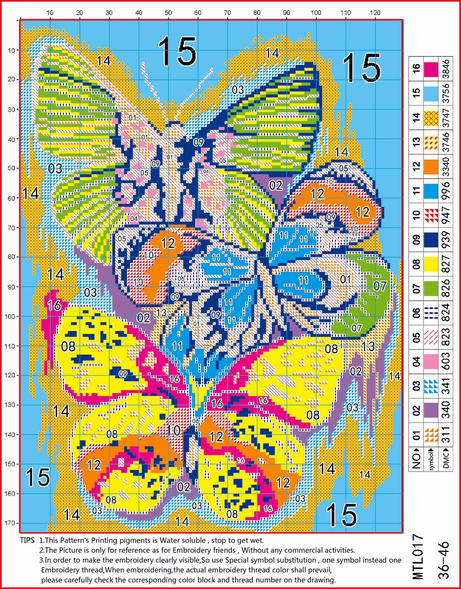 The color block in the picture does not represent the color of the embroidery thread. Please carefully identify the symbol or serial number corresponding to the color block, and select the number of lines according to the requirements of the serial number.