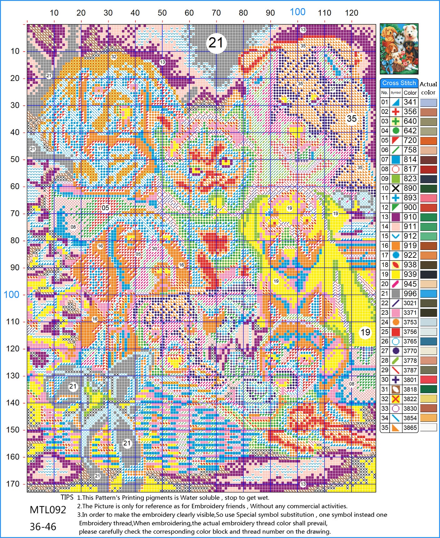 The color block in the picture does not represent the color of the embroidery thread. Please carefully identify the symbol or serial number corresponding to the color block, and select the number of lines according to the requirements of the serial number.
