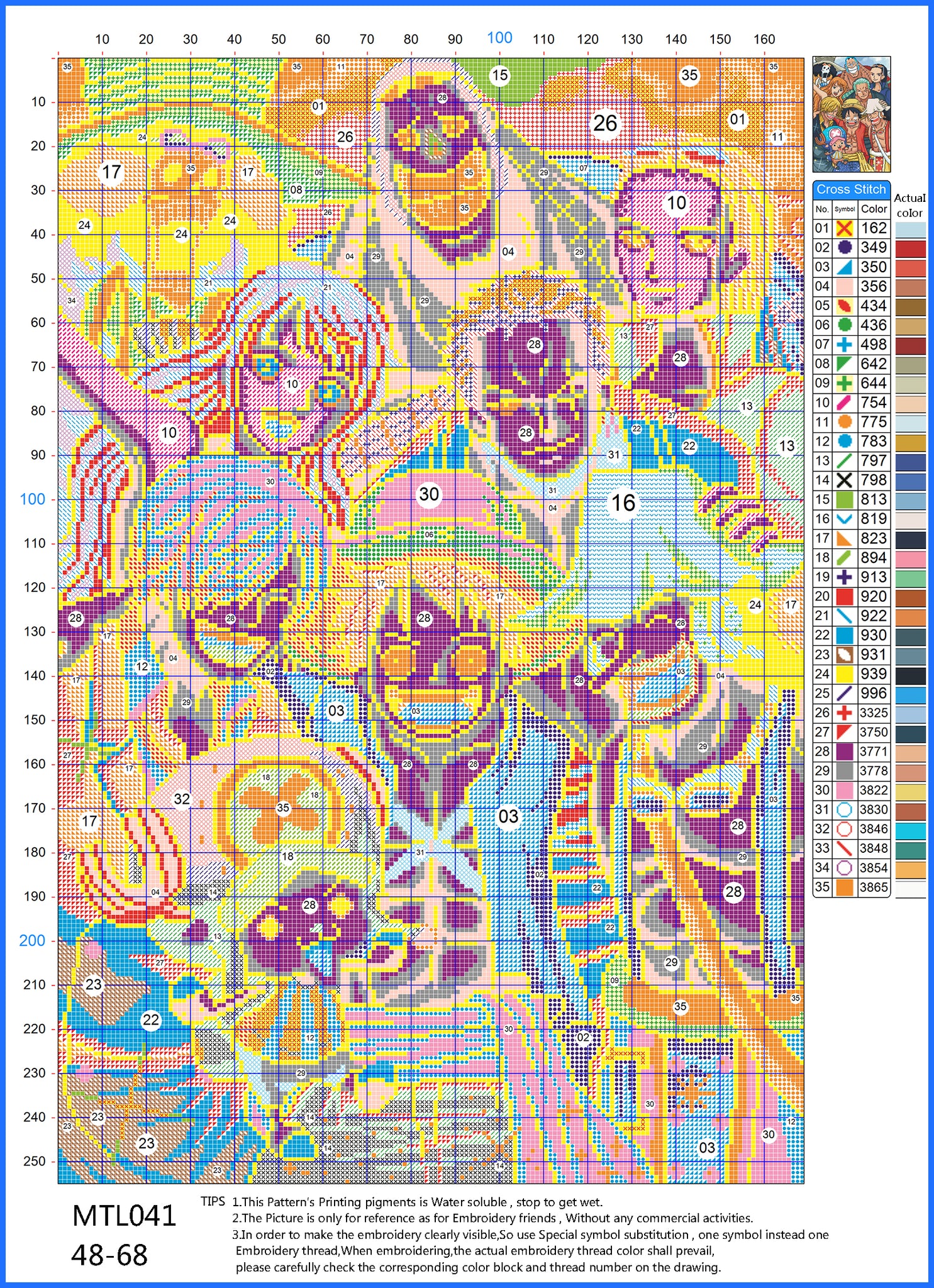 The color block in the picture does not represent the color of the embroidery thread. Please carefully identify the symbol or serial number corresponding to the color block, and select the number of lines according to the requirements of the serial number.