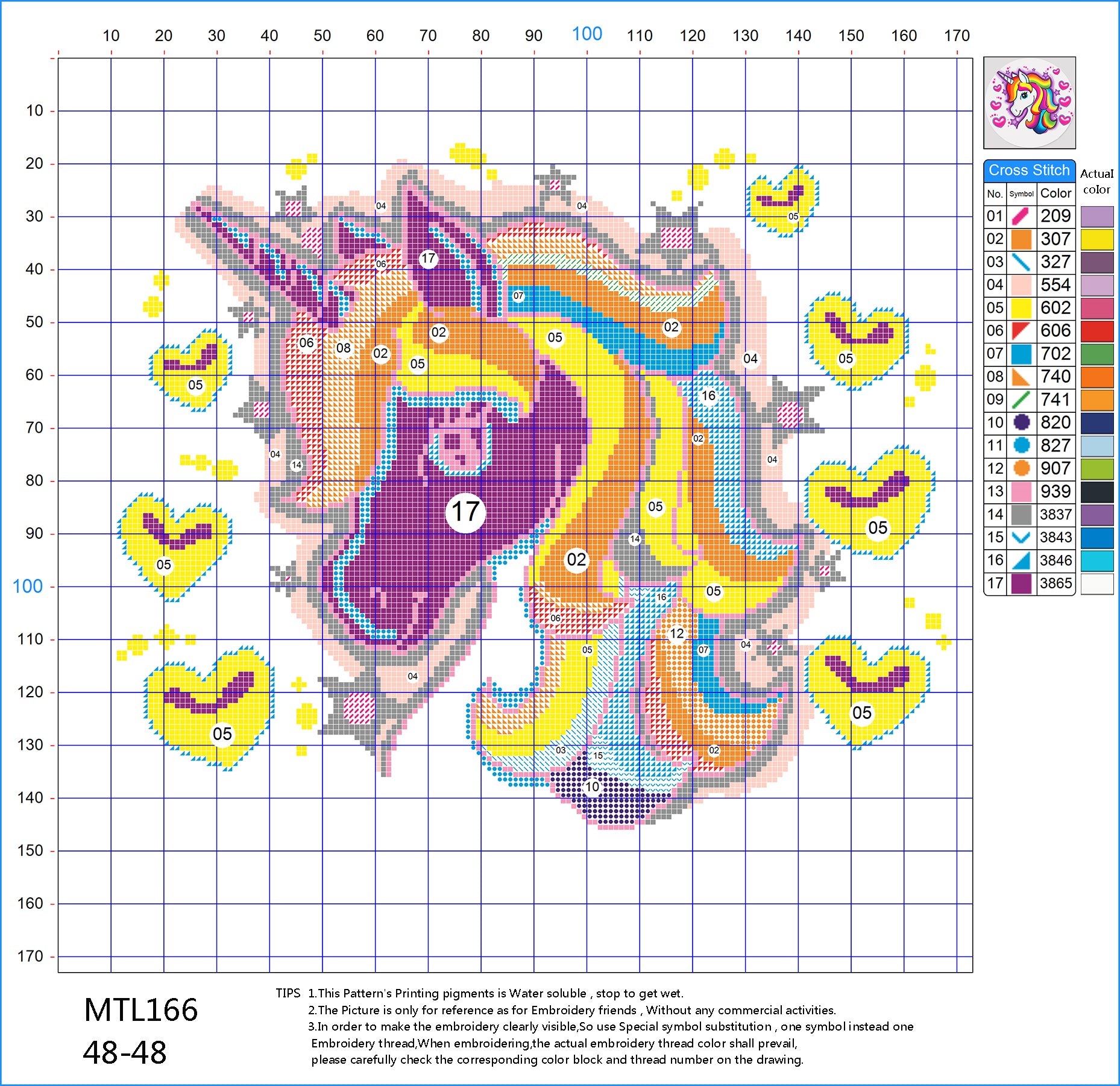 The color block in the picture does not represent the color of the embroidery thread. Please carefully identify the symbol or serial number corresponding to the color block, and select the number of lines according to the requirements of the serial number.