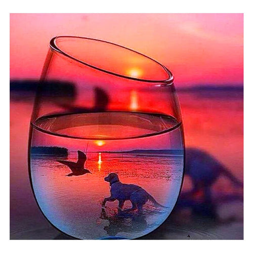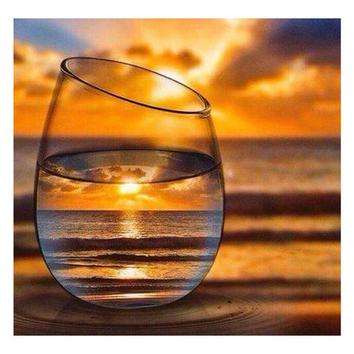 Full Diamond Painting kit | The reflection of beautiful sunset and sea in glass