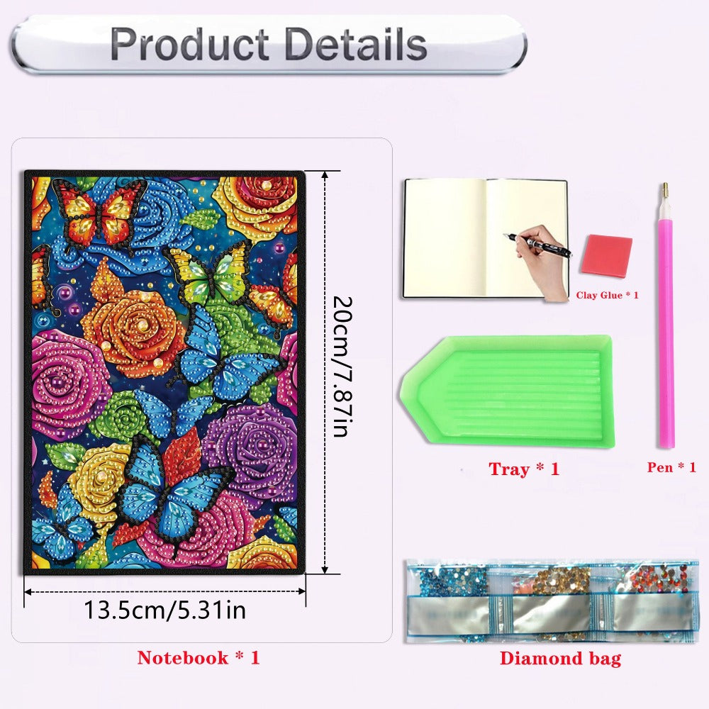 Diamond Painting Notebook for Adults, DIY Diamond Art Set, Featuring Flowers and Butterflies, A5 Leather Painting and Sketchbook