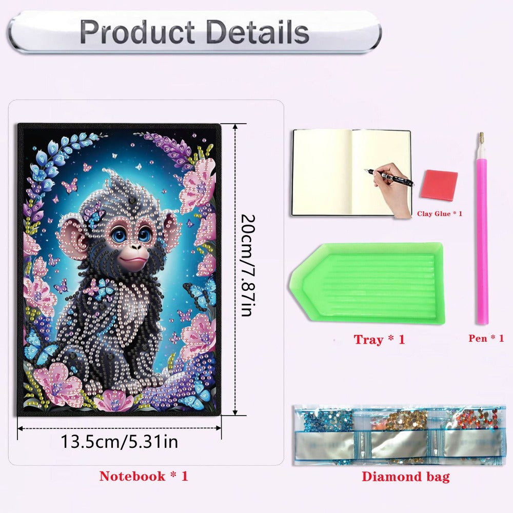 Diamond Art Painting Book, DIY Notebook with Special Shape, Monkey Diary, and Diamond Art Cover