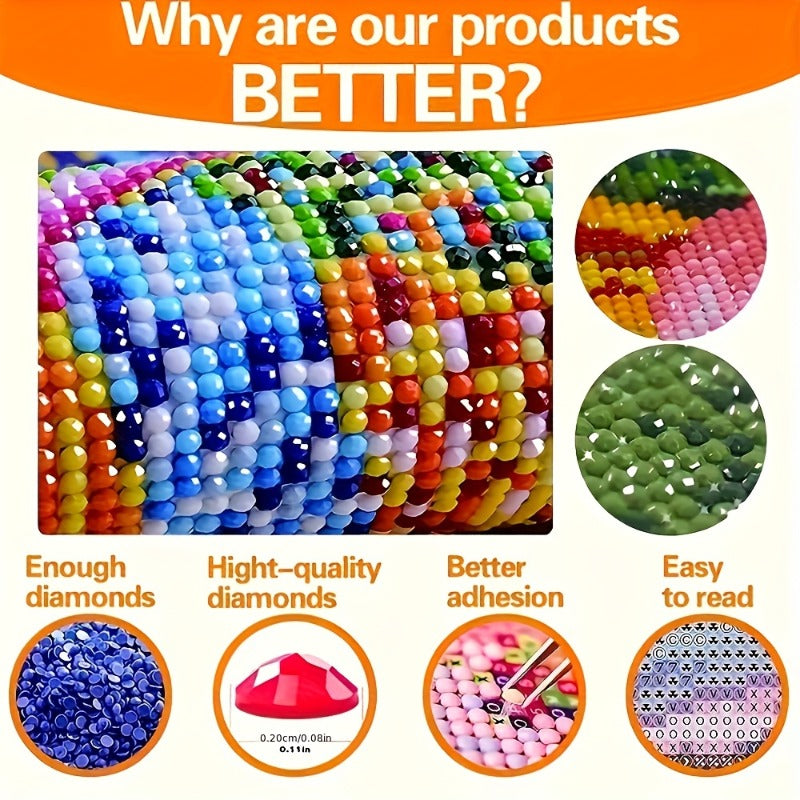 High-quality materials: The painted surface treatment coated with diamond ensures excellent durability, while synthetic diamonds provide vibrant colors and lasting luster.