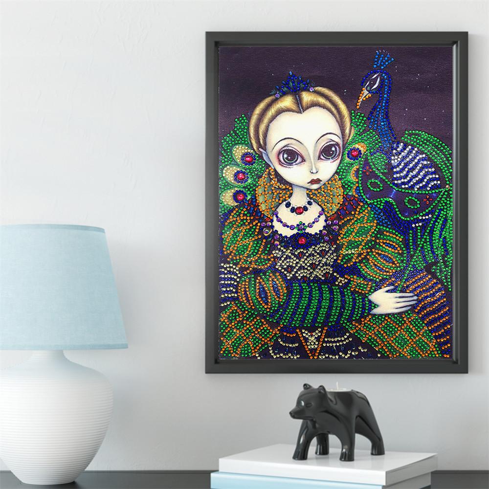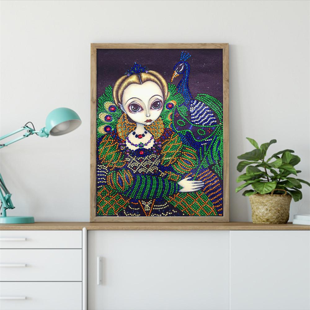 Crystal Rhinestone Diamond Painting Kit | Peacock and Girl