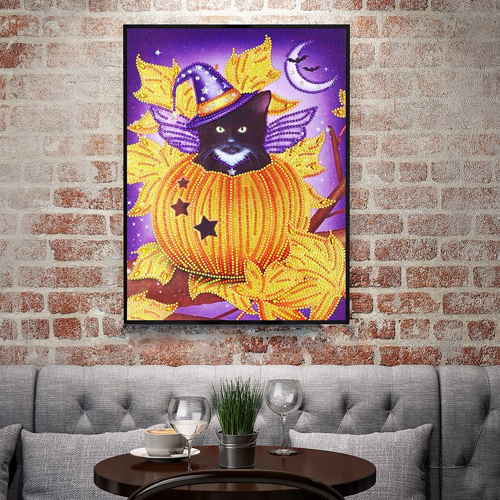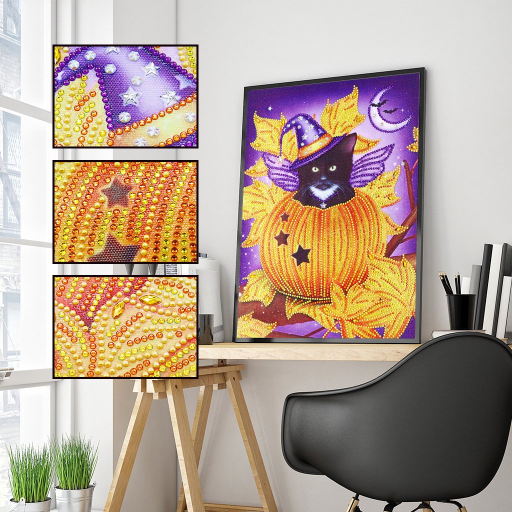 Crystal Rhinestone Diamond Painting Kit | Halloween Pumpkin and Black Cat