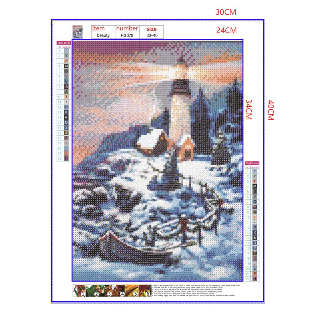 Full Diamond Painting kit | Lighthouse and house by the sea in winter